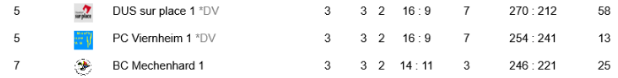 Gespannt kann man sein, ob sich Düsseldorf weiter nach oben schieben kann. Sie spielen als einziges der Top sechs Teams in Bad Münster. Siemens, Lübeck, Ibbenbüren und Bochum heißen die ersten vier Gegner, eine gute Möglichkeit auf 7:2 zu stellen. Danach wartet Saarbrücken, mit einem möglichen 8:2 wäre man oben dabei. Viernheim galt als Favorit und ist mit dabei. Zum Auftakt geht es gegen Achern, es folgen die beiden Berliner, Jever und Mechenhard. „Du berichtest zu wenig über Mechenhard“ wurde ich bei der LM Mixte begrüßt. Mechenhard, diesmal ohne die Probst Geschwister, ist gut gestartet und hat mit Ines Herbert die #4 der Damen Rangliste im Kader. Die „jungen Wilden“, verstärkt mit Oscar Fitz, starten gegen Jever, spielen dann gegen die beiden Berliner, haben dann Horb und zum Abschluss Viernheim. Bei 7:3 gibt es ein Interview 😉
