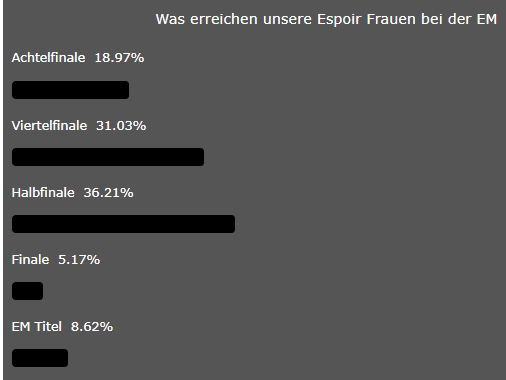 Gut die Hälfte von euch war von einer Medaille der weiblichen Espoirs überzeugt. Dass es Gold werden konnte, glaubten nur knapp 10 Prozent. Bingo
