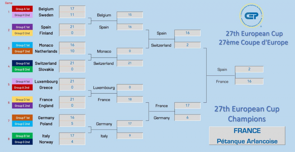 Da den Franzosen aber ein Triplettesieg reichte, konnten diese einigermaßen entspannt an die Sache rangehen und auch relativ schnell das entscheidende Triplette im Mixte gewinnen. Der dritte Platz ist dennoch ein Riesen Riesen Erfolg für uns, wenn man bedenkt unter welchen Vorzeichen der Eurocup dieses Jahr für uns stand.