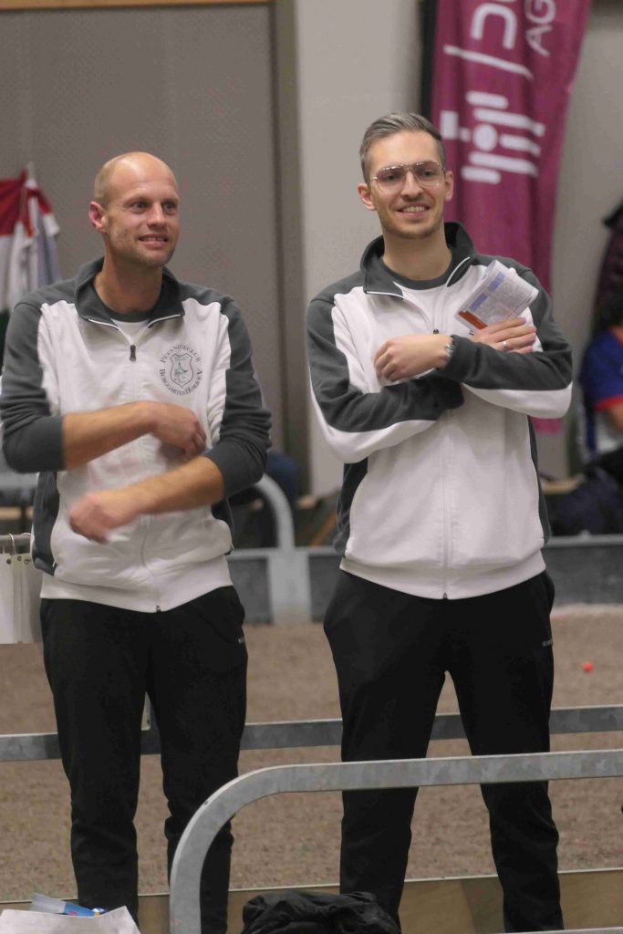 Spätestens jetzt wurde Horb von den vielen Zuschauern und dem Gegner mehr als ernst genommen. In den Doubletten ging es nun darum, weiter mitzuhalten und möglichst zwei Doubletten zu gewinnen. Frank und Abdoulaye verloren diesmal recht schnell, Tobse und Kevin hatten bei 11:8 einen Schuss für Schluss. Allerdings auf gute 14 Meter und Tobse schoss leider drüber. Solche Chancen muss man gegen einen so starken Gegner nutzen. Sie machten danach keinen Punkt mehr, das bedeutungslose Mixte Doublette wurde bei 11:11 abgebrochen. Horb brauchte nun beide Tripletten, um ins Finale einzuziehen.