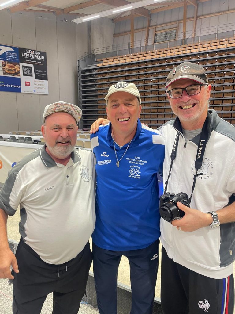 Und schnell wird klar, dass das nicht klappen wird. Die langen Tage forderten ihren Tribut. Die Franzosen hatten viele leichtere und kürzere Spiele, mussten keine Tripletten in den KO-Runden spielen, die Hoffnung, beide Tripletten gewinnen zu können, war nicht mehr wirklich zu spüren. Nach einer guten Stunde unterlag das Mixte Triplette und die schöne Reise der Horber durch den Euro Cup endete gegen starke und faire Franzosen aus Arlanc.