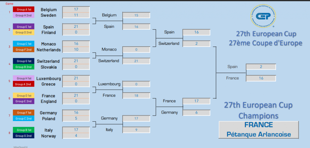 Die Spanier unterlagen am Ende nach den Zahlen deutlich gegen Frankreich und sicherten sich bei ihrer ersten Teilnahme am Euro Cup gleich Silber. Die Spiele waren aber sehr knapp, mit etwas mehr Glück, hätte Spanien die Tripletten erreichen können. So ist Horb das einzige Team, das Arlanc in die Tripletten gezwungen hat. Bronze ging an Deutschland = Horb und an die Schweiz. Den Fed Cup gewannen wie im Vorjahr die Dänen aus Hedebo