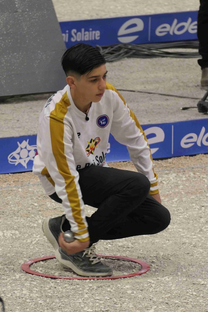 Auf dem Fernseh-Platz gab es Bonetto gegen Rocher. Gespannt waren wir, wie Dawson Herleman, der 15 jährige Cousin von Mikael Bonetto, mit der Situation umgehen würde. Am Samstag spielte er großartig als Tireur und Milleau. Gegen Team Rocher begann er als Milleau, startete mit einem Loch und war anfangs sichtlich nervös. Später drehten Bonetto und Herleman und Dawson kam besser in die Partie. Am Ende siegten starke „Rs“ relativ souverän. Bei 0:6 und vier Carreaus von Mika und Dawson, hatte Montoro zweimal Schuss für Vier, ließ diese aber liegen. Statt einem möglichen 5:6, stand es 0:7 und die drei „Rs“ ließen sich nicht mehr stoppen. Tolles Spiel.